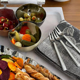 Versa Cocktail Forks, Set of 4 Perfect for spearing olives, picking up shrimp, or handling seafood with ease. This handcrafted set features micro-hammered 18/8 stainless steel with sleek modern handles that complement any table setting. Dishwasher-safe and designed to impress, these elegant two-tined forks bring a professional touch to entertaining.
