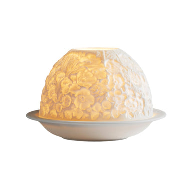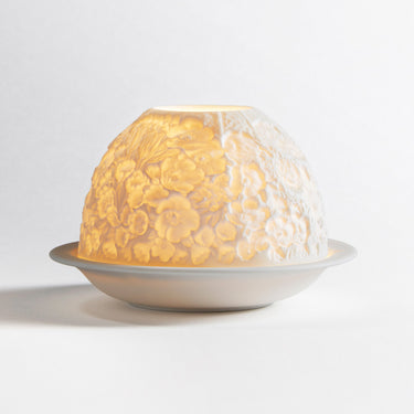 It was in Limoges, France, in 1828 that Paul de Bourgoing invented the Lithophane (VotivelightTM), a traditional engraving technique on a fine bisque (non-glazed) porcelain. The glow of the candle shines through the raised and carved surface of the votive contrasting light against shadow, revealing its richly detailed design.